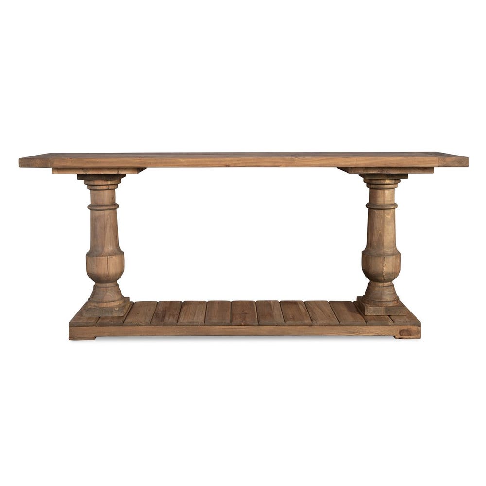 Crafted from reclaimed fir lumber and hand-turned balusters, this piece boasts a sturdy build. Its naturally sun-faded, distressed finish is enriched with a subtle stony gray wash. Made from solid wood, it naturally adapts to temperature and humidity fluctuations, creating small cracks and textured surfaces that enhance its genuine charm and unique character.