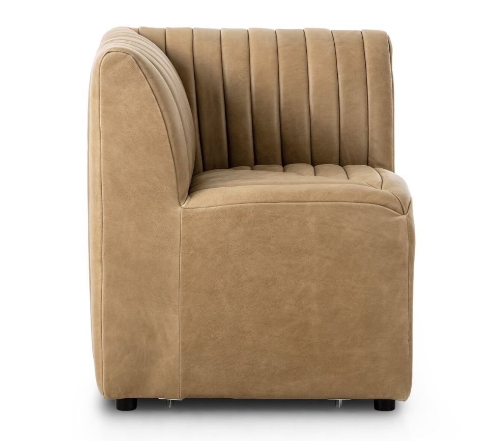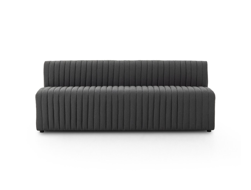 The Augustine Dining Banquette combines dramatic channeling with a trend-forward texture for a stylish and comfortable seating experience. Its armless design is enhanced with top-grain leather featuring a beautifully pronounced grain, creating a linear, sophisticated look. Perfectly sized to complement larger tables or open spaces, it also offers the flexibility to pair with matching pieces for clever modularity in your kitchen or dining room. Make your dining area both elegant and adaptable with this thoughtfully designed bench.