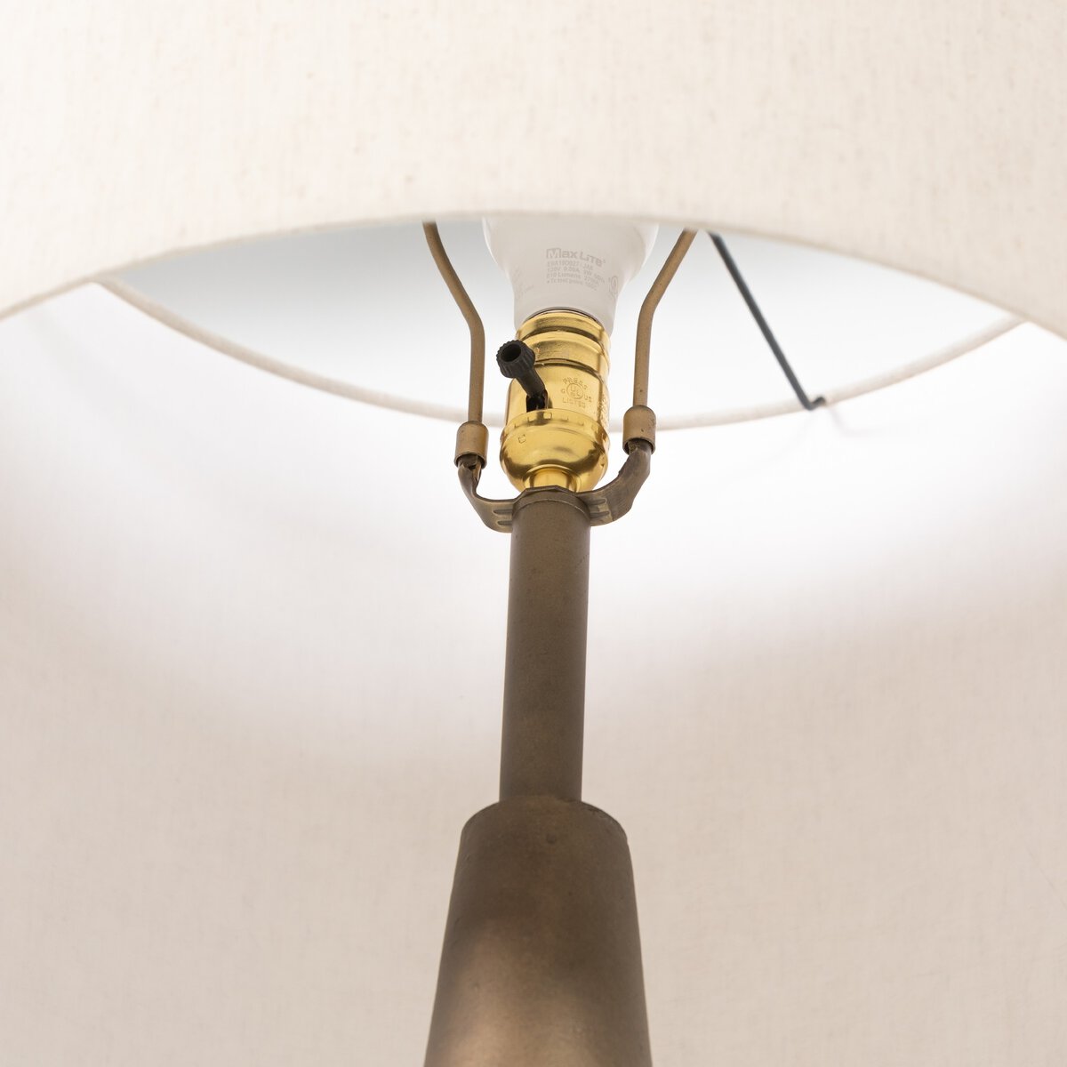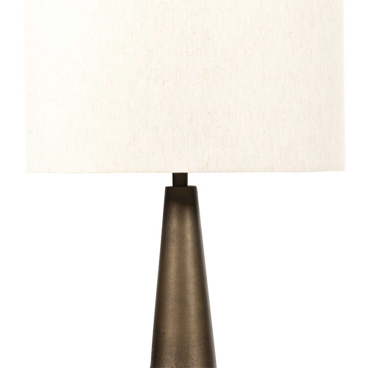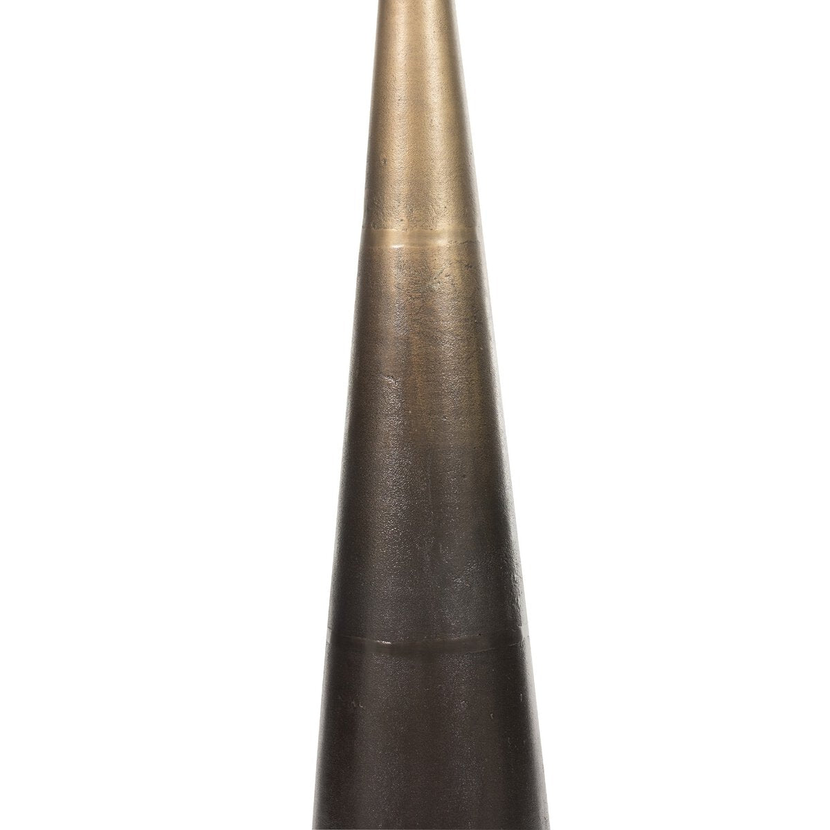 The Nour Floor Lamp boasts a bold silhouette with a tapered metal base in ombre stainless steel, featuring an antique brass finish that accentuates iron’s smooth color transitions for a one-of-a-kind ombre look. It’s finished with a 100% cotton shade, adding a touch of elegance to your space