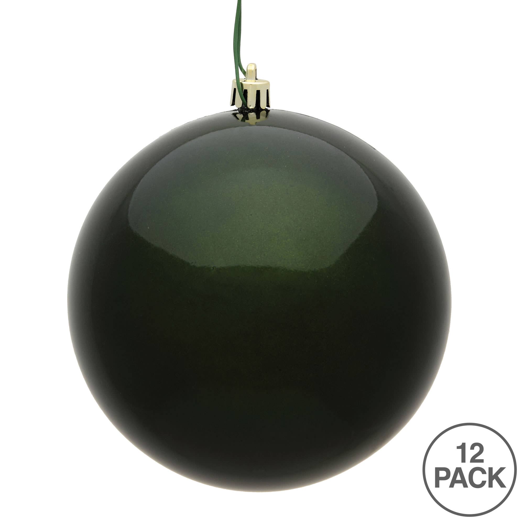 Vickerman 3" Moss Green Candy Ball Ornament. This item is made from shatterproof and UV resistant plastic for extended protection from fading and breaking. The cap is drilled and looped with floral wire to ensure it is reliable and ready to hang. This unique ornament is an exceptional addition to any collection as it matches well with a variety of décor and goes perfectly on a holiday tree. Includes 6 ornaments per pack.