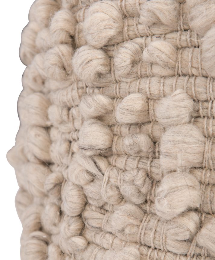 Elevate your living space with the Kai Fabric Ottoman, wrapped in hand-loomed wool for a rich natural texture. Its unique design adds effortless boho-chic charm while providing a comfortable spot to rest your feet or extra seating. Perfect for adding warmth and style to any luxe interior.
