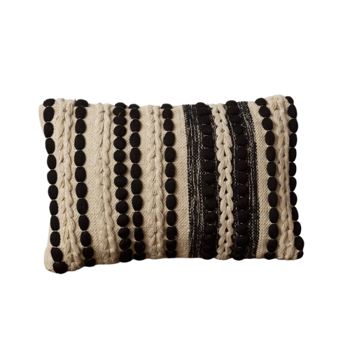 Miriam Beige and Black Fabric Patterned Decorative Pillow