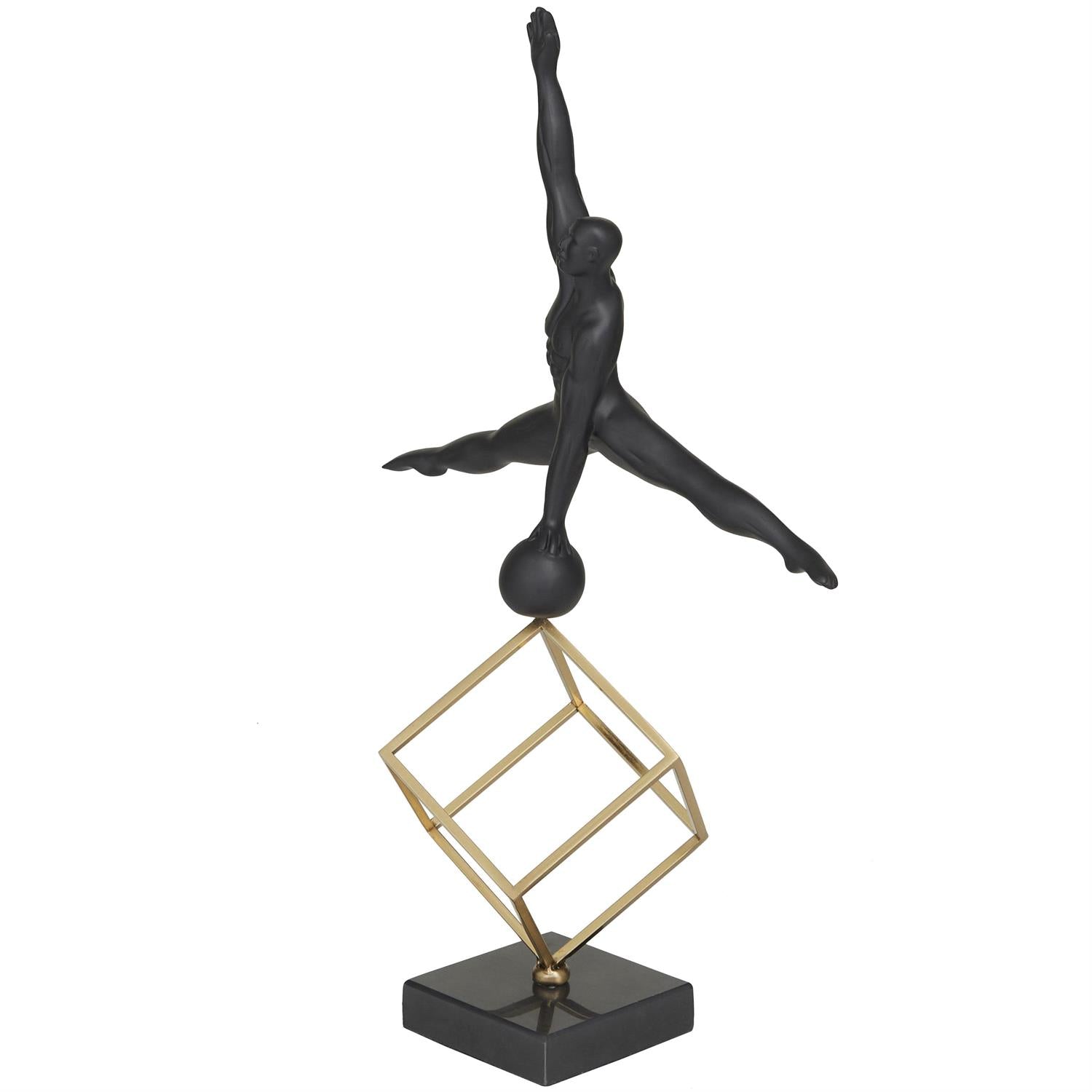 This black gymnast sculpture combines sleek metal, marble, and plastic for a modern, minimalist look. Featuring a chiseled figure balanced on a marble base with bold geometric shapes, it adds a touch of elegant artistry to any space.
